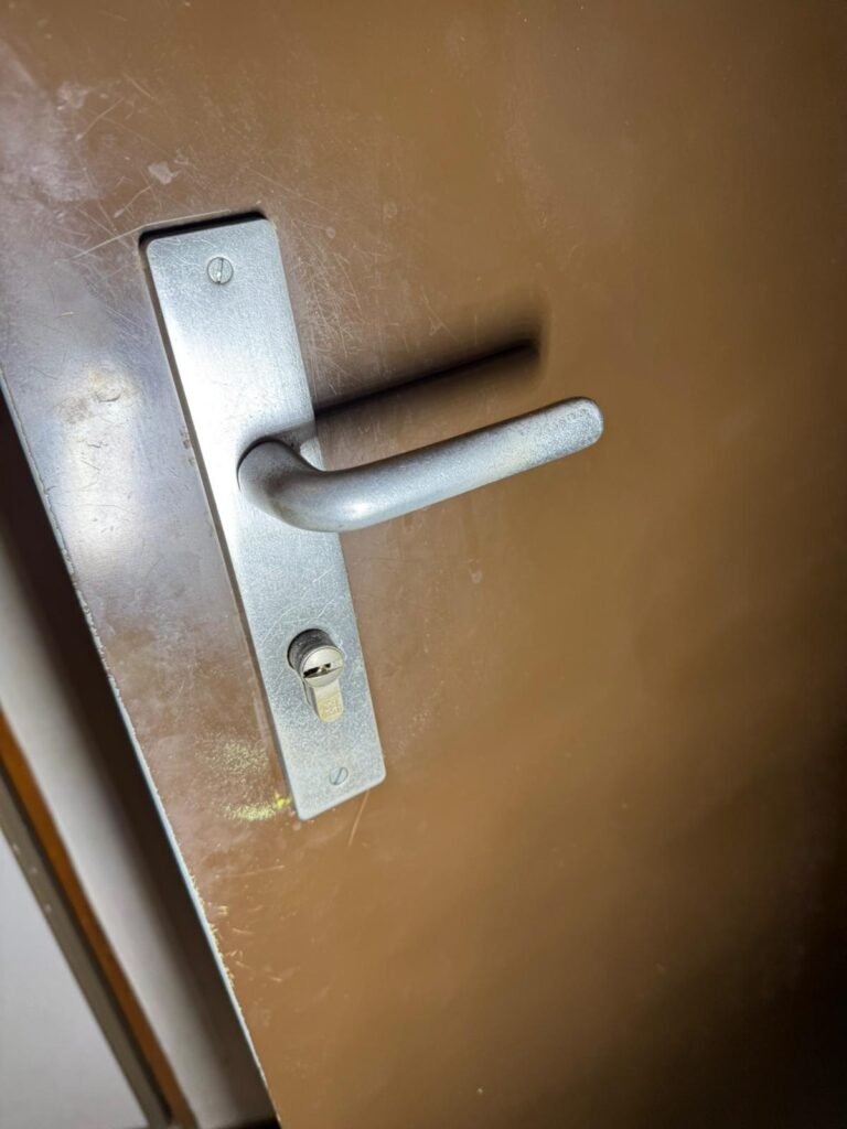 J’ai donc entrepris la remise en sécurité de la porte blindée avec un objectif précis : permettre une fermeture correcte, même provisoire, en attendant le remplacement complet de l’ensemble.