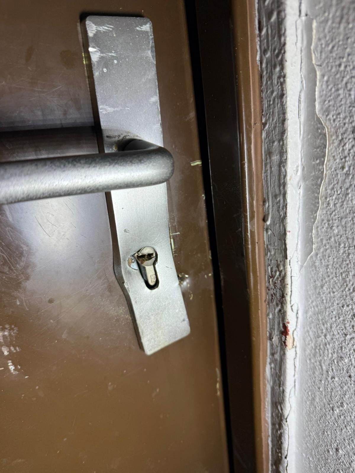 Après plusieurs heures d’intervention, la porte a finalement pu être refermée correctement. C’était le point essentiel de la mission : rendre le logement à nouveau fermable, malgré des dégâts structurels importants.
