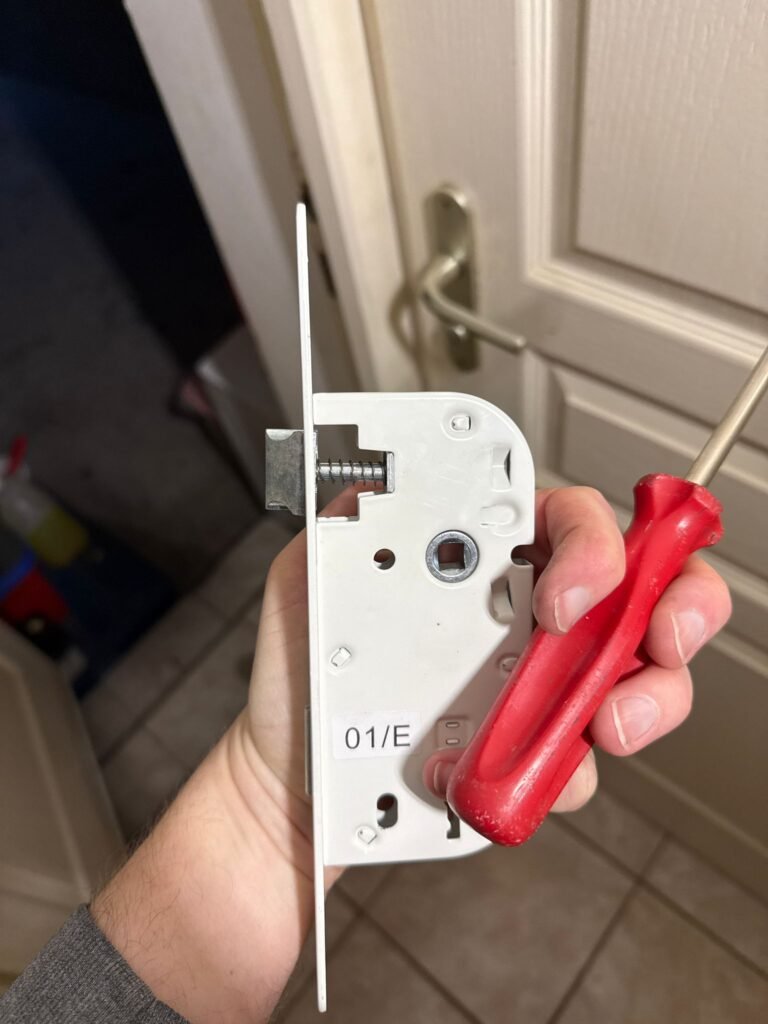 Après l’ouverture, j’ai remplacé le mécanisme de serrure par un modèle neuf. Cette solution permettait de repartir sur une base propre, fiable et immédiatement fonctionnelle.